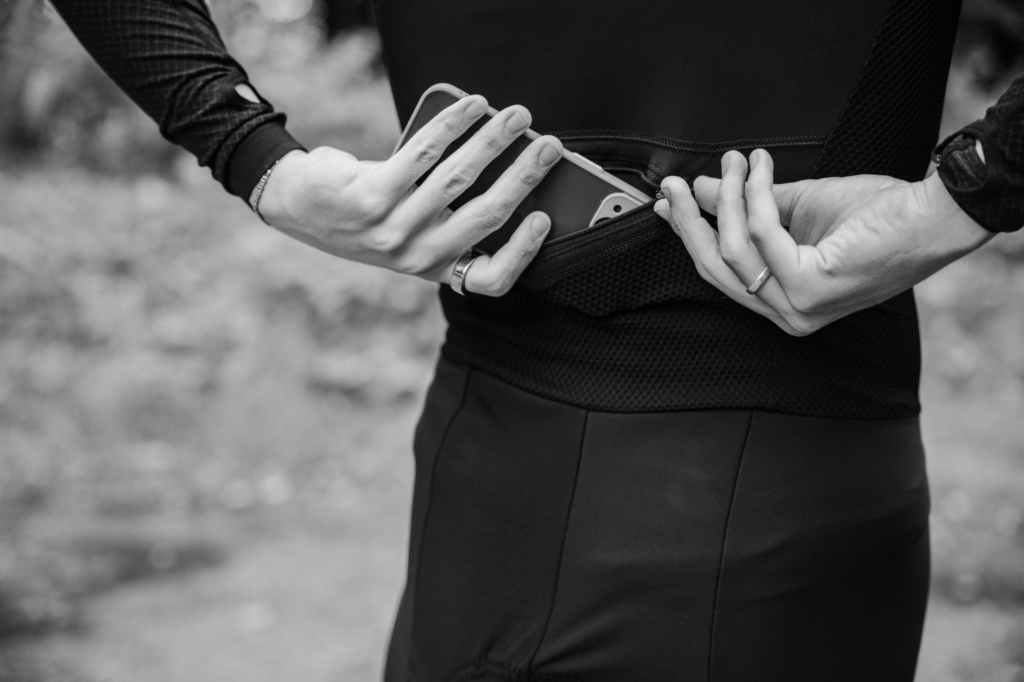 The rear zipped storage pocket is really handy for things you don’t need while riding, but want to keep safe, so keys, cards & cash. The built in thermal gilet is a revelation adding another layer to your outfit choice. But the highlight of these bibs is the shin seals keeping your Spatz overshoes covered and any moisture or rain out.